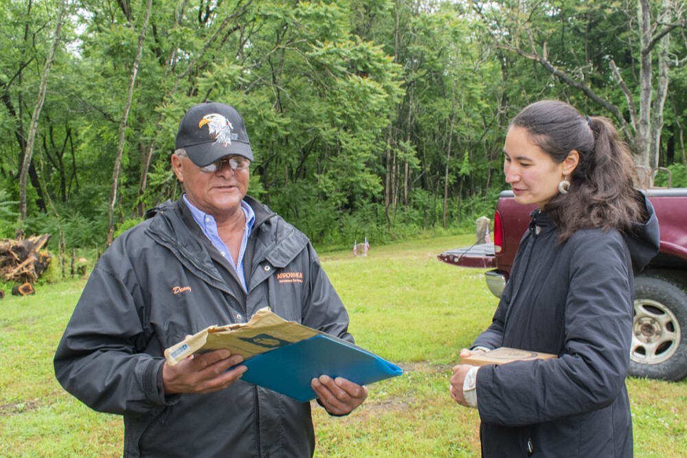 Principal Chief Dennis Coker gives an orientation to volunteers during a work party at the Fork Branch Tribal Lands in Cheswold, DE. Image credit Donovan Aldridge.